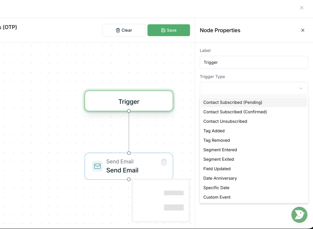 A trigger is the event that starts the automation. When this event occurs, the automation will begin running for that contact.