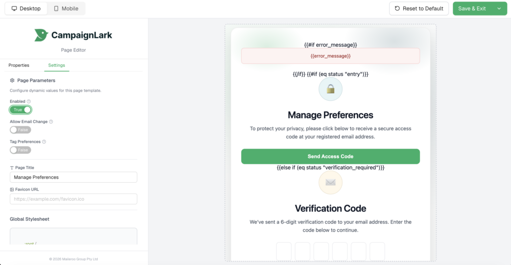 The Manage Preferences page allows your recipients to control how they receive emails from you.
