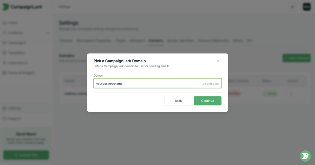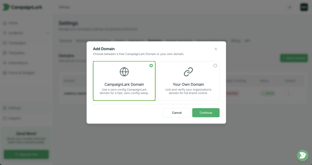 CampaignLark Domain – Instantly create and use a CampaignLark managed domain.