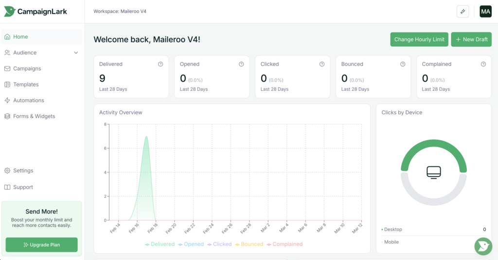 Once your workspace has been approved, it will be assigned a default hourly sending limit.